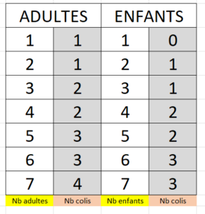 - Une participation est demandée pour chaque unité de colis elle s'élève actuellement à 3 € par unité.